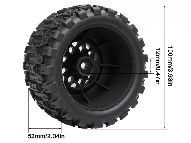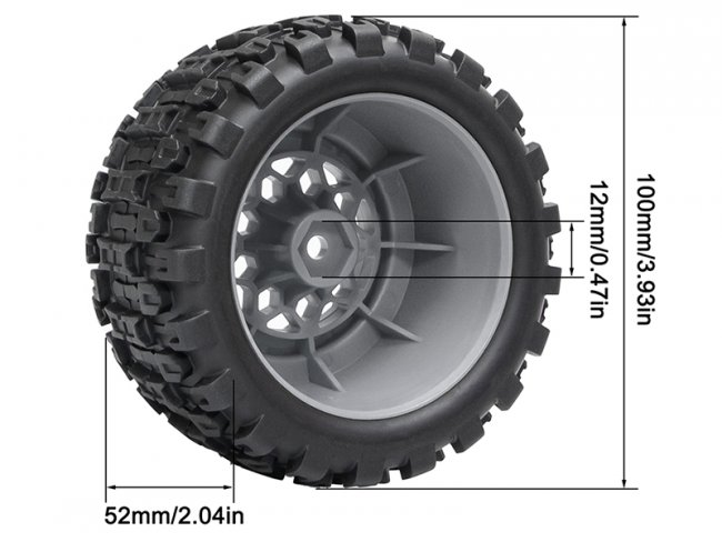 RUBBER TIRE & RIM SET 100 X 52mm 12mm TYPE-B HEX FOR TRAXXAS MINI E-REVO MINI XRT MINI MAXX RC 1/14 1/16 MONSTER TRUCK|