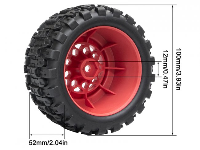 RUBBER TIRE & RIM SET 100 X 52mm 12mm TYPE-B HEX FOR TRAXXAS MINI E-REVO MINI XRT MINI MAXX RC 1/14 1/16 MONSTER TRUCK by RCMODEL