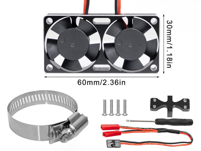 ADJUSTABLE DUAL MOTOR HEATSINK COOLING FAN 30 X 30mm WITH 304 STAINLESS TAIL BELT MOUNT FOR HOBBY 540 3660 3670 4074 4068 4274 by RCMODEL