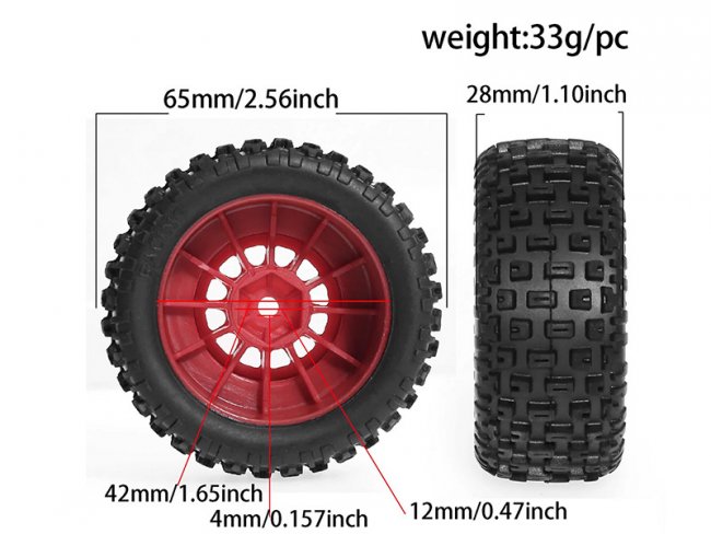 SHORT COURSE RUBBER TIRE & RIM SET 65 X 28mm 12mm HEX ARA550116 FOR 1/14 ARRMA MOJAVE GROM RC TRUCK ARA2104 by RCMODEL