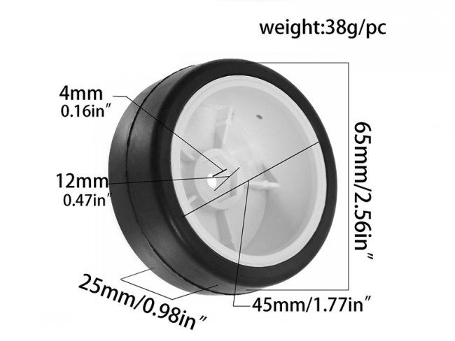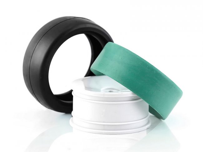 RACING COMPETITION RUBBER TIRE AND RIM SET - DISC TYPE 65 x 25mm 12mm HEX FOR 1/10 RC ON-ROAD CERO ULTRA TRF CAR by RCMODEL