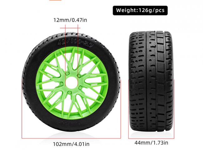 RUBBER TIRE AND RIM SET 44/ 102 2.9" ARA550062 FOR ARRMA 1/7 INFRACTION LIMITLESS V2 6S BLX ARA109001 ARA7116V2 by RCMODEL