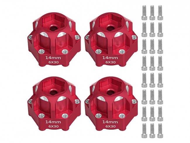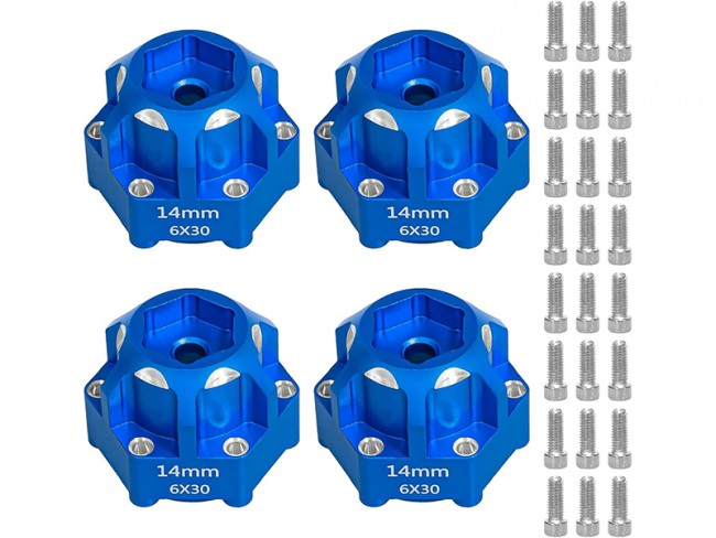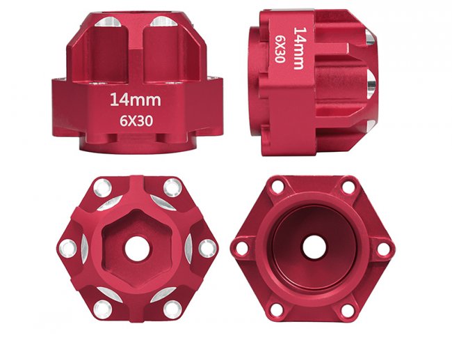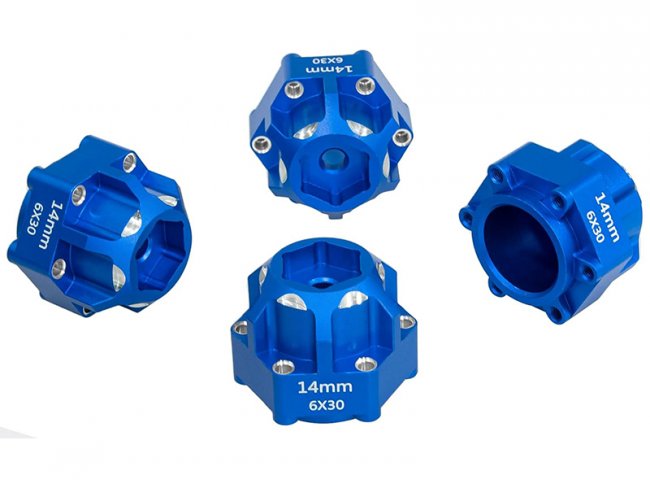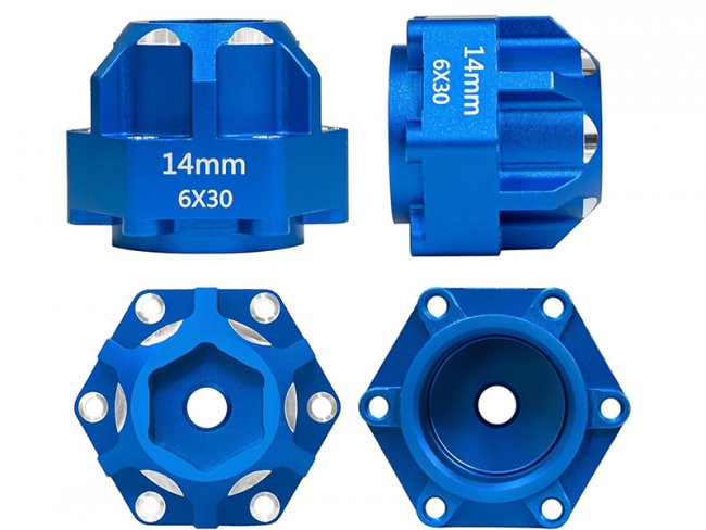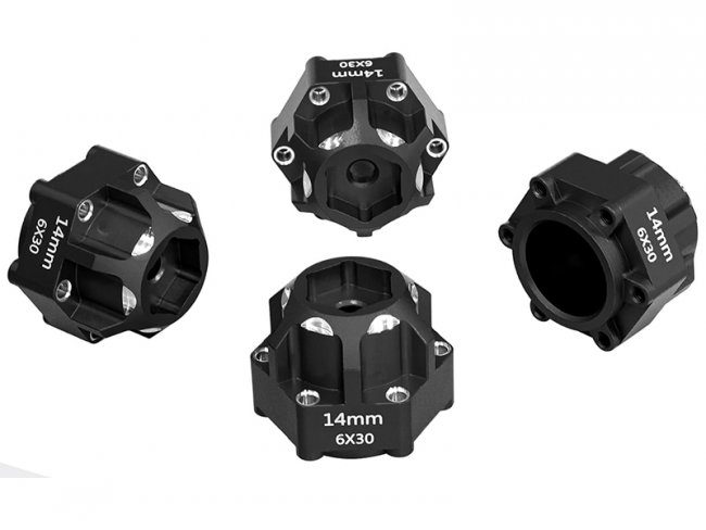 Aluminum Hex Adapters 6x30 to 14mm compatible for model #PRO634600 are an upgrade part designed to improve the durability and look of 1/10 scale RC trucks like the ARRMA Granite 3S and Senton 3S.