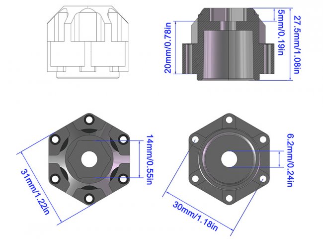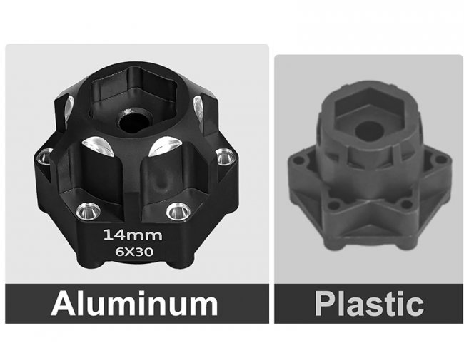 - Aluminum wide 6x30 to 14mm hex adapters 20mm thickness fits for 1/10 Pro-line Arrma Senton Granite.