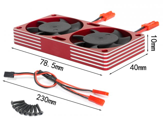 ALUMINUM TWIN COOLING FAN MOTOR HEATSINK 36mm 540 550 3650 FOR 1/8 1/10 RC TAMIYA RC CAR - RED