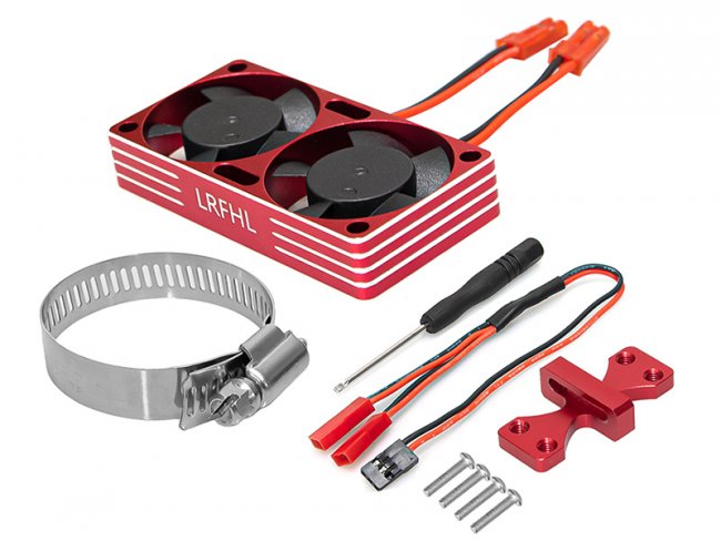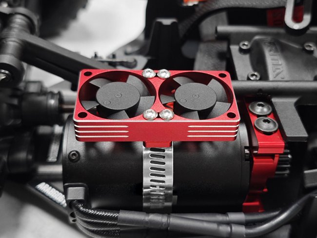 ALUMINUM 540 MOTOR HEATSINK DUAL TYPE WITH VELINEON VXL3S ESC COOLING FANS FOR TRAXXAS 1/10 SLASH HOSS STAMPEDE RUSLTER HOSS 4X4 - RED