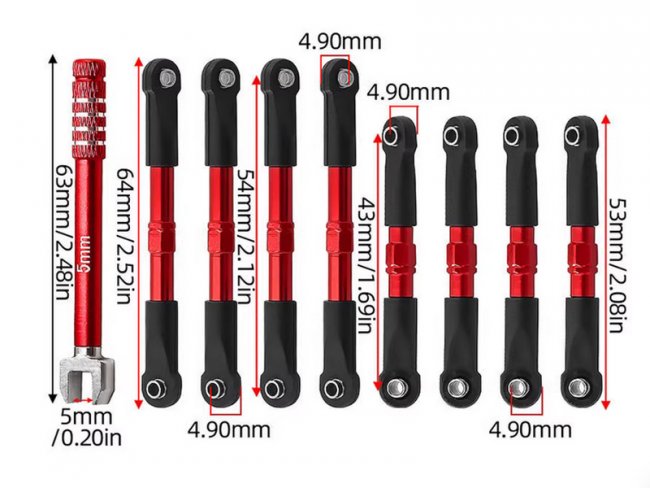 ALUMINUM FRONT & REAR TIE ROD SET W. WRENCH 7038 7018 7075 FOR TRAXXAS 1/16 SLASH 4X4 SHORT COURSE 70054 by RCMODEL