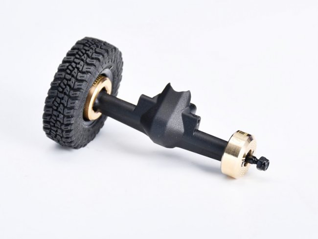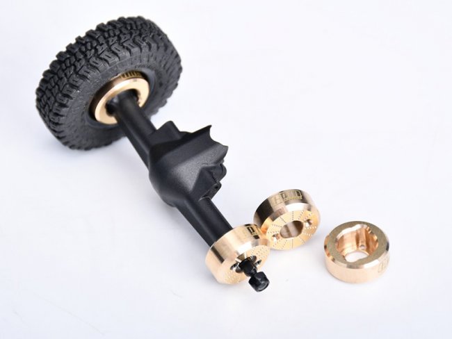 Precision Brass Weight Blocks】Specifically engineered for the AXIAL SCX30 to enhance climbing performance, these blocks are CNC-machined from solid brass stock - (5.0g each) Mounted on the rear axle hubs, they effectively lower the vehicle's center of gravity, improving driving stability and climbing capability to create a more versatile crawler - Compatible with AXI-3320 rear axle, directly replacing stock plastic rear hubs