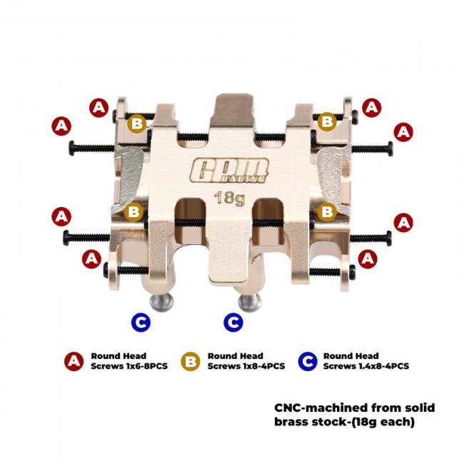 GPM BRASS CENTER GEAR BOX MOUNT SKID PLATE - 18g AXI-3311 FOR AXIAL 1/30 SCX30 Ford Bronco Jeep Wrangler JLU 4X4 AXI-2048 AXI-2261|