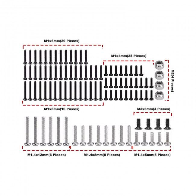 - M1.4 round-head hex socket screws require a 1.27mm hex socket wrench