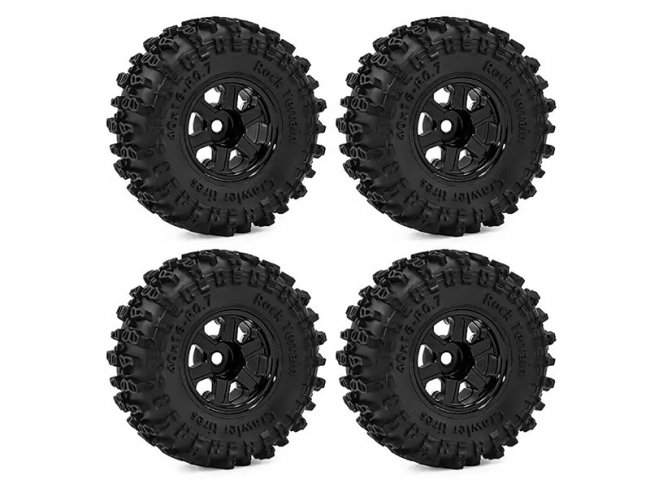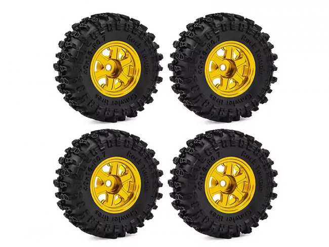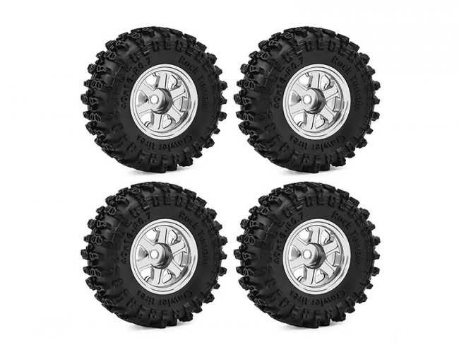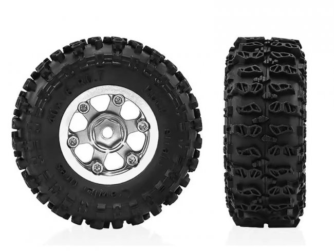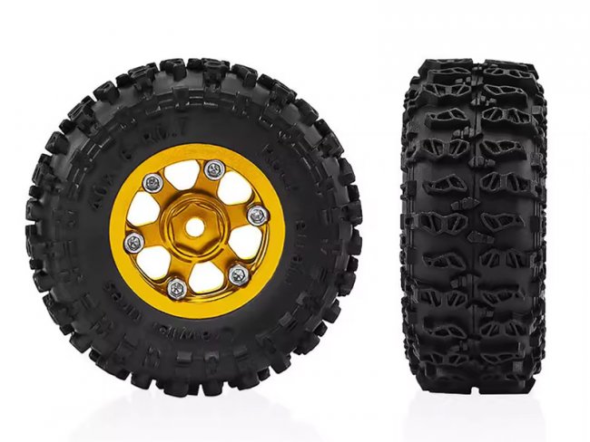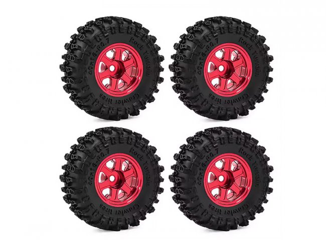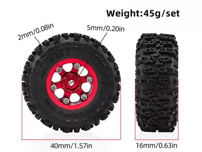 ALUMINUM TIRE & WHEEL SET 40 X 16mm FOR 1/30 AXIAL SCX30 RED CAT ASCENT 32 MINI CRALWER CHEVROLET K10 FORD BRONCO JEEP WRANGLER JLU AXI-2260 AXI-2048 AXI-2261